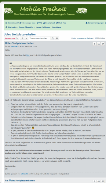 Im Wohnwagen seit 1968, später mit dem eigenen Zelt, im Auto durch Norwegen mit viel Regen, musste anschließend ein Kastenwagen her, der 1990 selbst ausgebaut wurde, mit den Kindern kam der Wohnwagen und als die fast aus dem Haus waren, 2012 die erste Weißware.