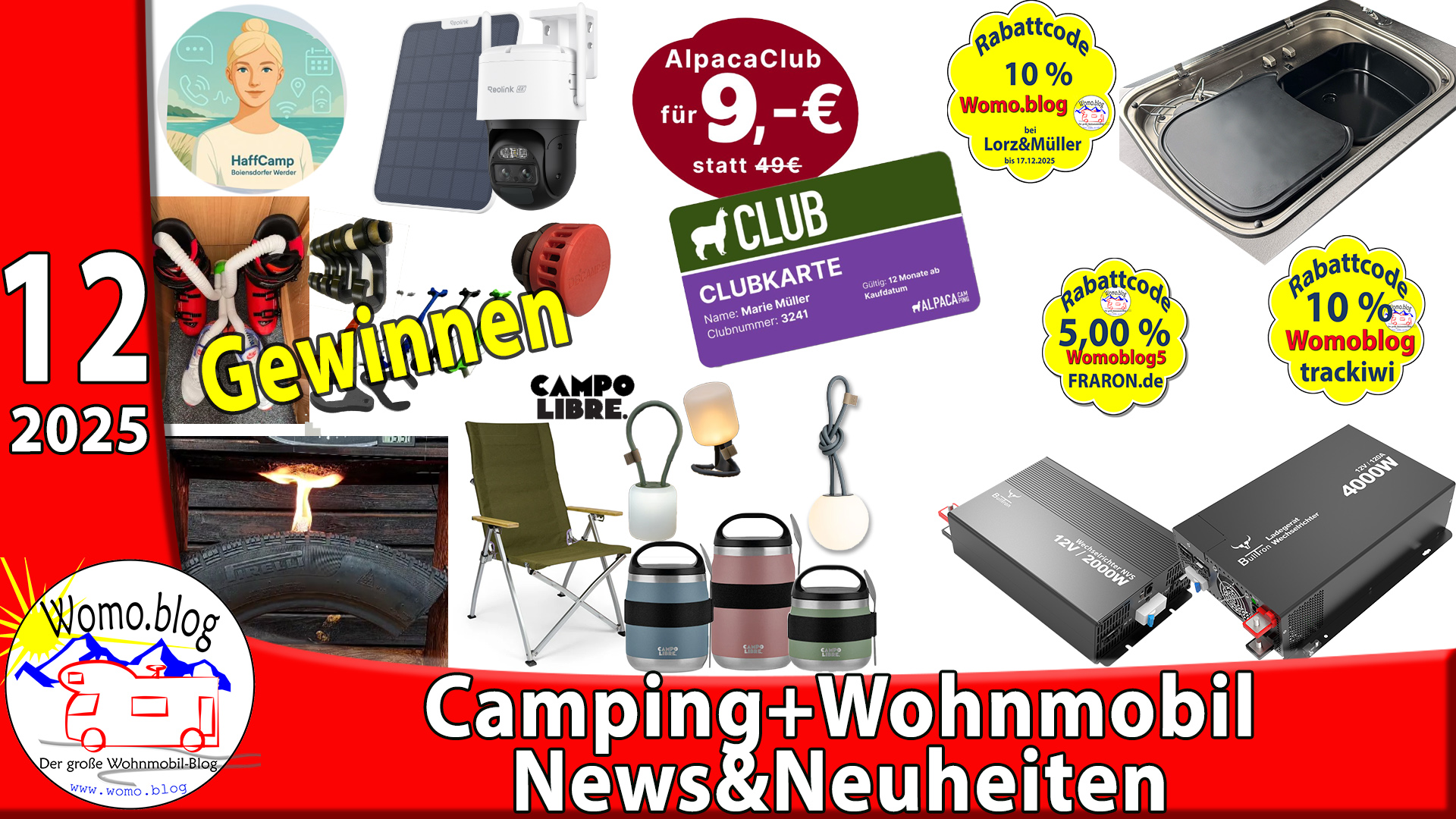 So günstig war es noch nie AlpacaClub für 9 Euro, die neuen Bulltron Inverter, Kamera für die Stellplatzüberwachung, Perfekt-Van Waschbecken, Trackiwi Share ist da und wir Gutschein und reden über brennende Autos und Wohnmobile