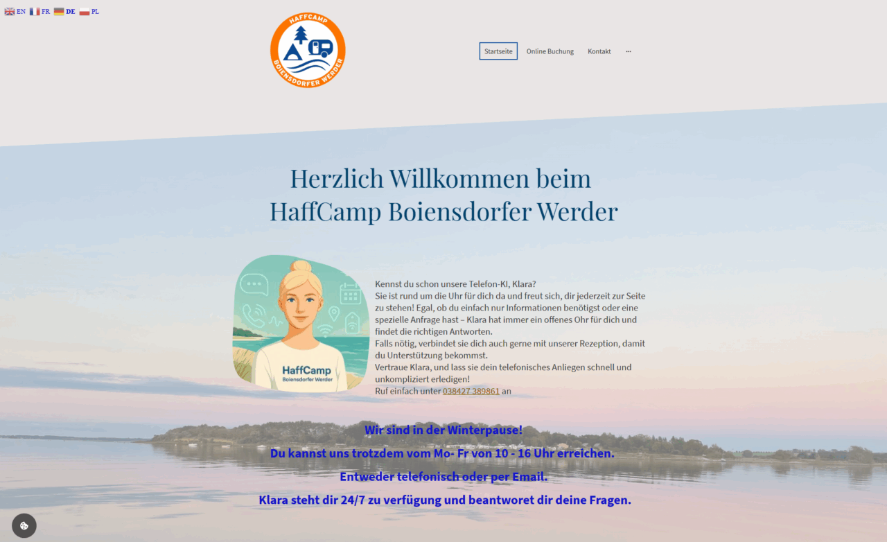 hier verlinke euch die Seite von Heide Schneider, da könnt ihr euch selbst ein Bild davon machen. Dort findet ihr auch die Telefonnummer und den Link vom Campingplatz Haffcamp-Werder. Dort wartet Klara auf euren Anruf.