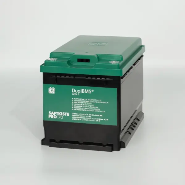 Die neue Generation der smarten SaftkistePRO Batterien hat all das integriert. Ein Computer, das intelligente BMS, alles sitzt direkt in der Batterie.