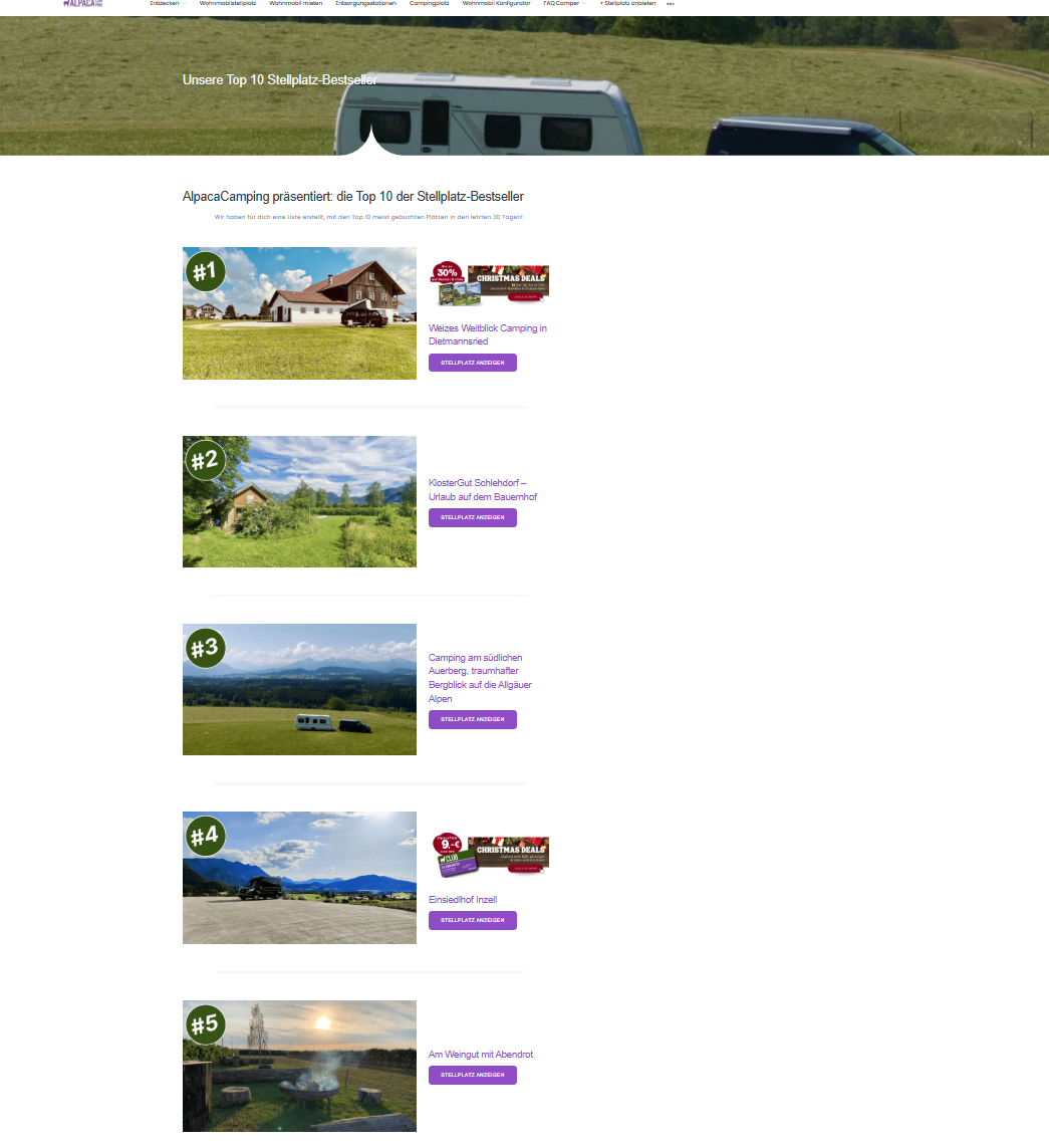 Das sind im letzten Jahr die Plätze gewesen, die am meisten gebucht wurden.