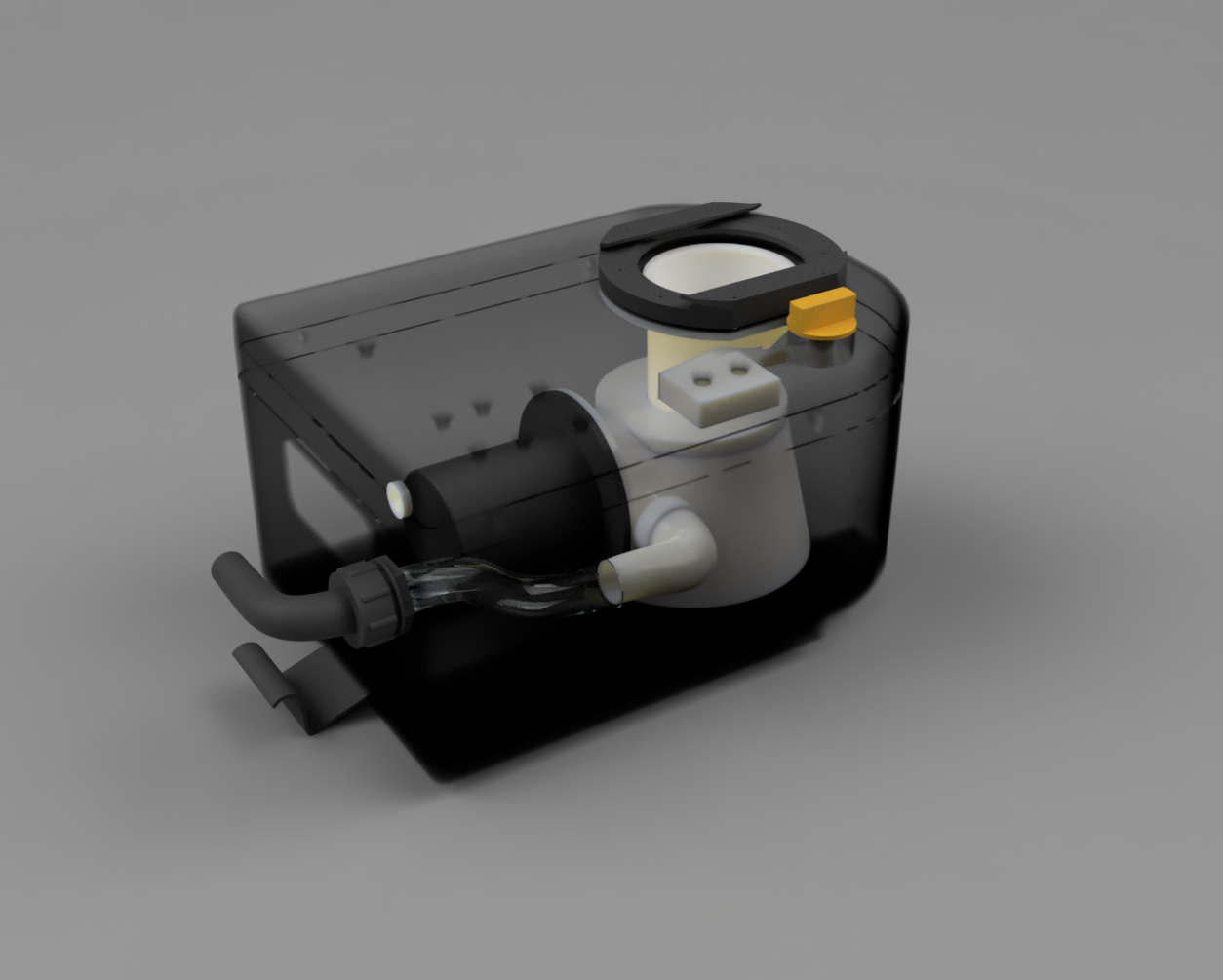 Der Toiletteninhalt wird angesaugt und durch ein Schneidwerk zerkleinert.