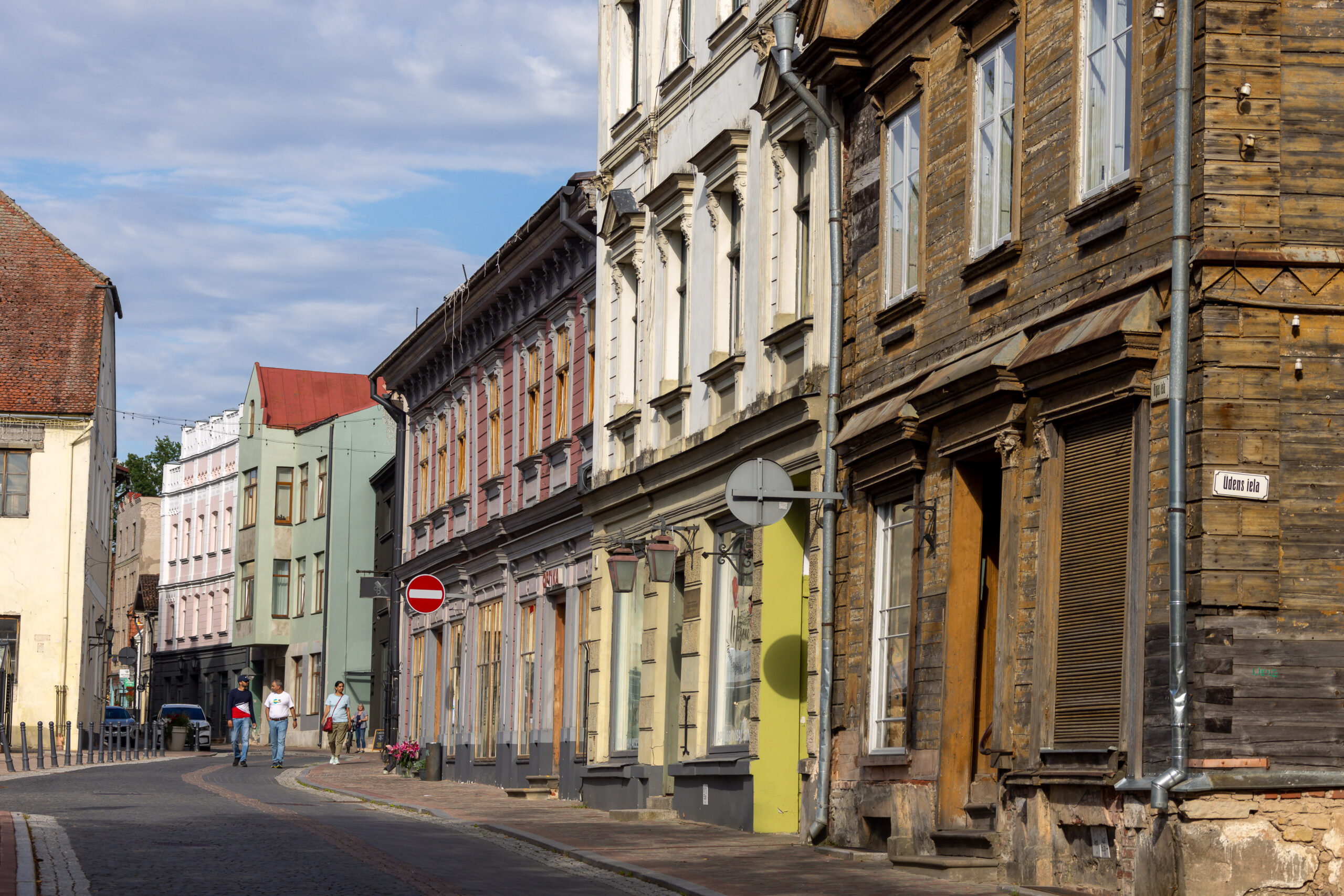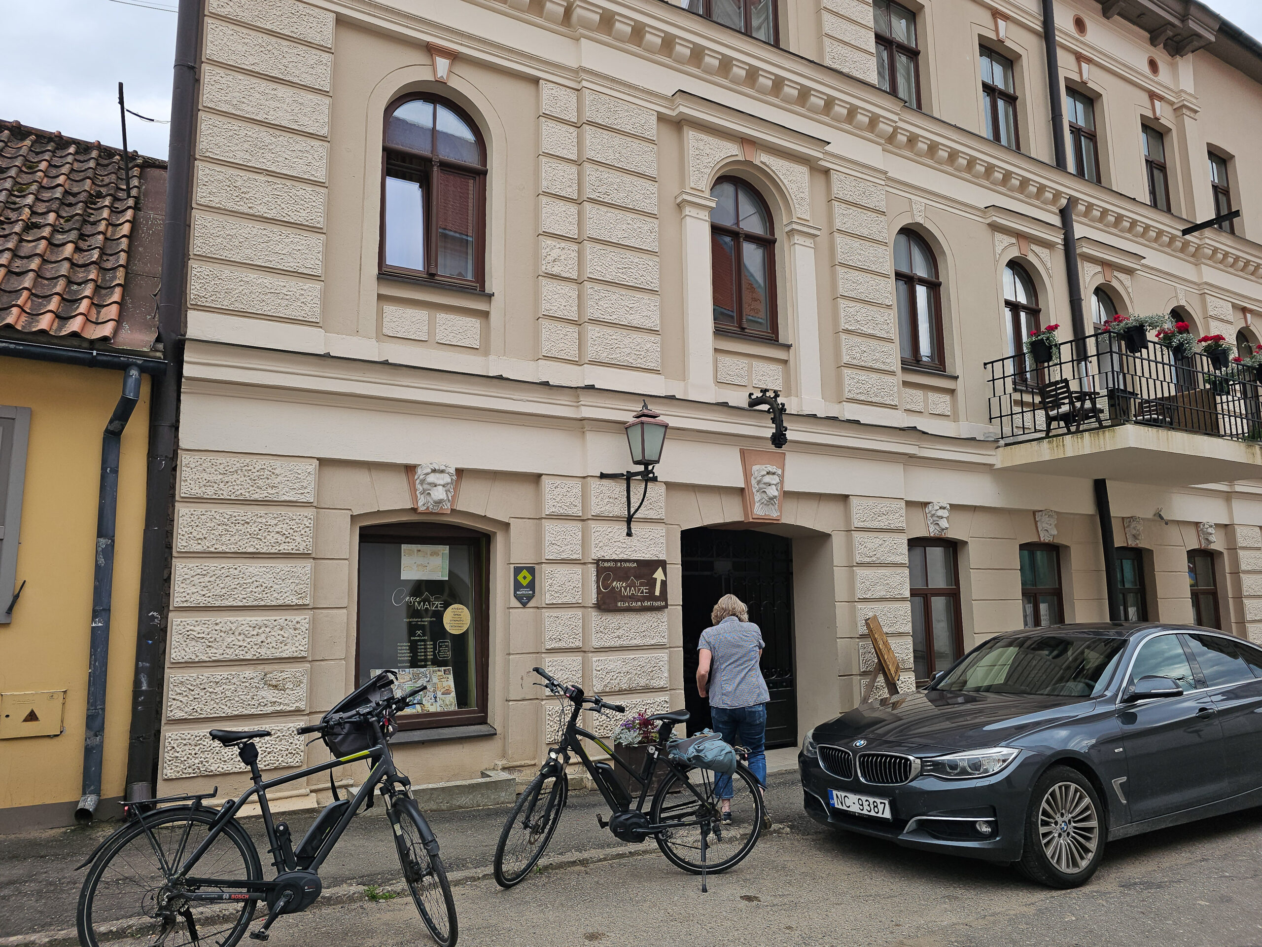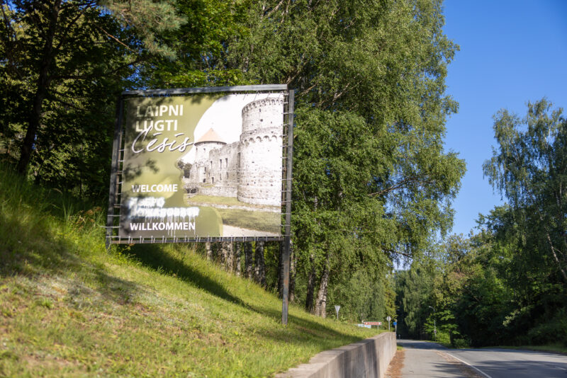 Am Eingang der Stadt fiel uns etwas auf: Begrüßungsworte in verschiedenen Sprachen – Englisch, Lettisch, Deutsch, . Russisch ist durchgestrichen. Das erste Mal auf unserer Reise, dass wir dieses Zeichen so deutlich sahen. Kein aggressiver Akt – aber eine unmissverständliche Aussage. Die Menschen hier wissen, was ihnen widerfahren ist. Und sie wollen es nicht vergessen.