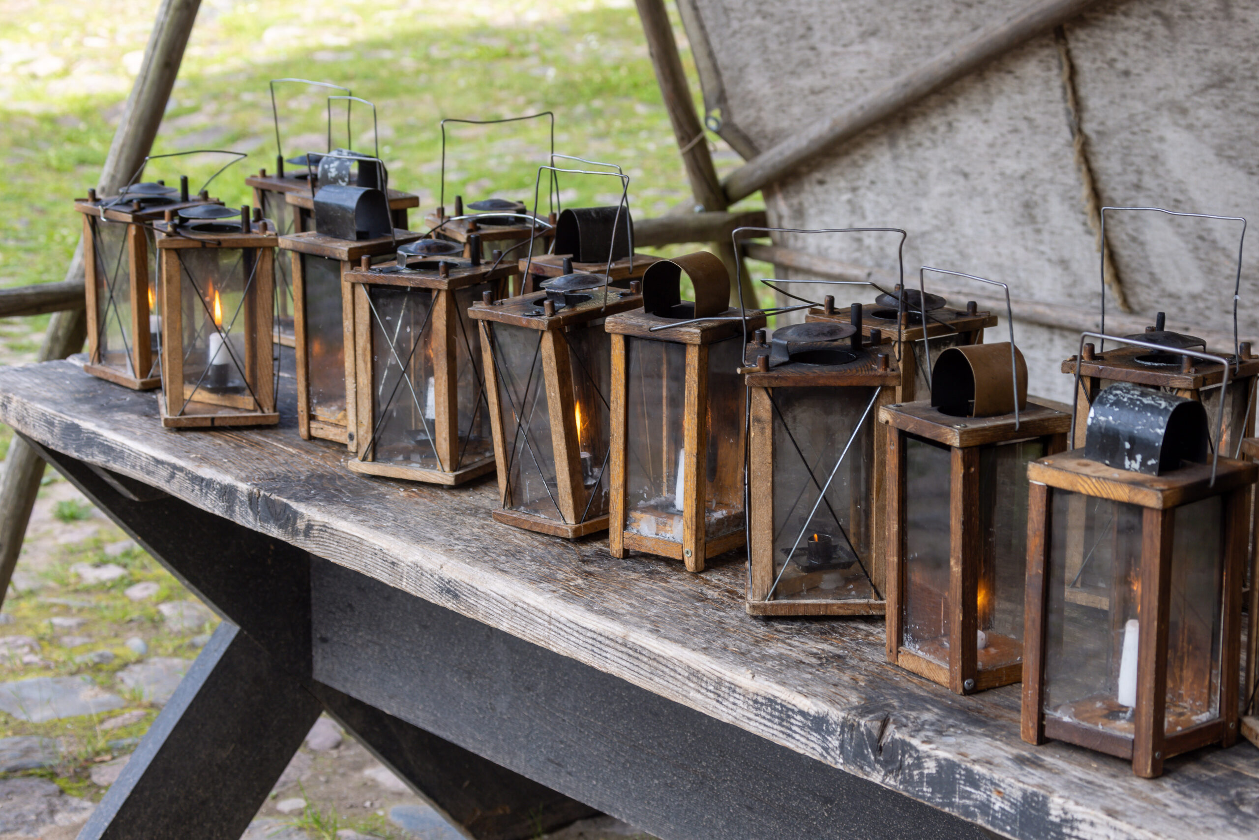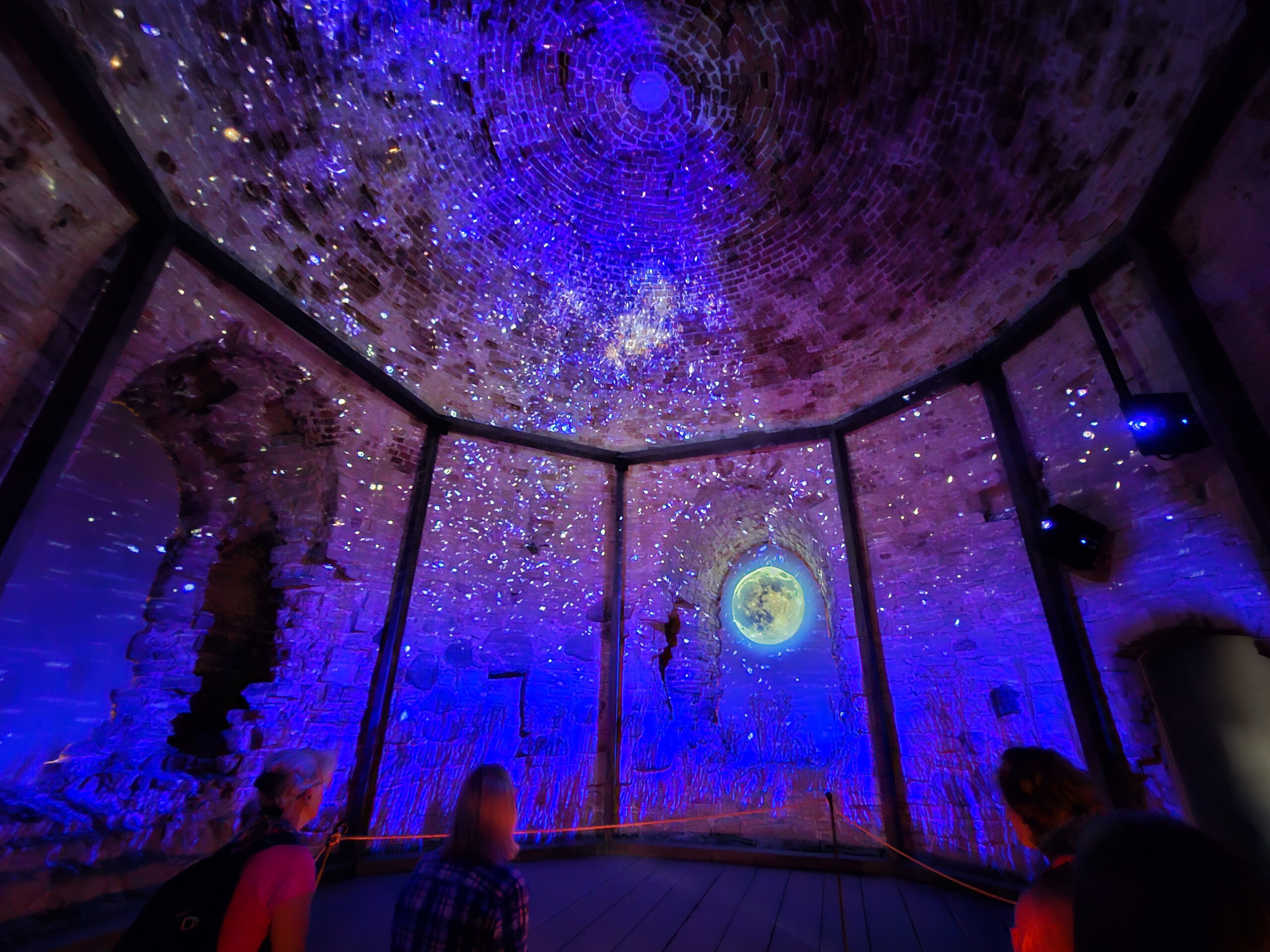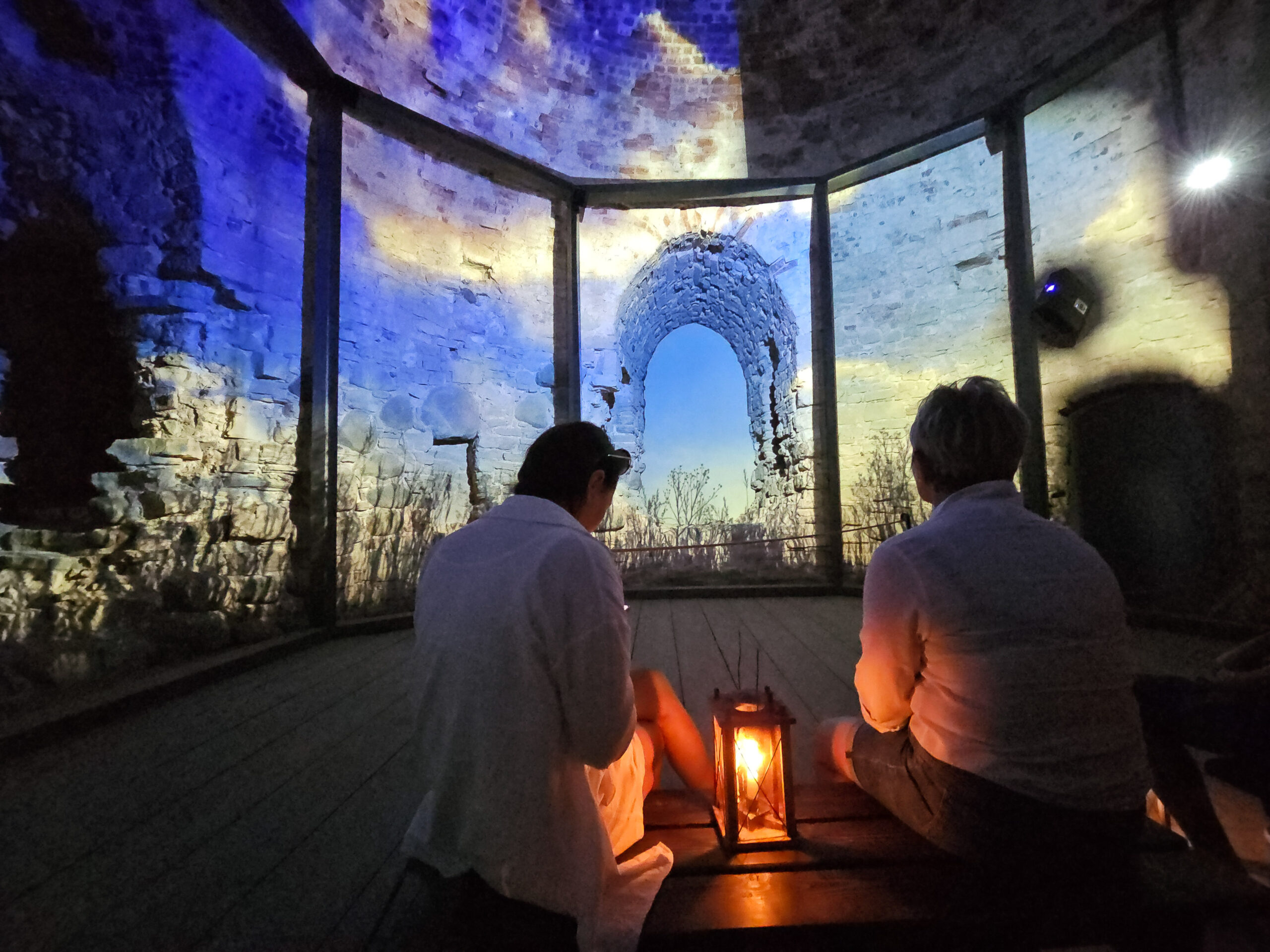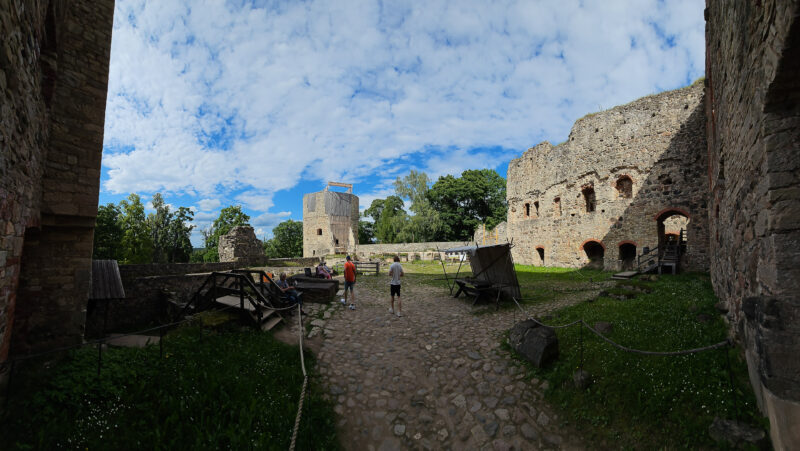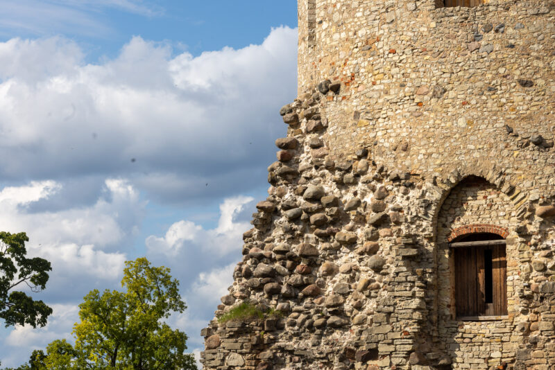 Die Burg überragt die Stadt. Zwei massive Türme, eine weite Ruinenanlage dazwischen, von Wildblumen umgeben. Wir näherten uns ihr durch den Park und über eine hölzerne Brücke – und bekamen beim Einlass eine Kerzenlaterne in die Hand gedrückt. So besucht man hier die Burg: ohne elektrisches Licht, mit einem flackernden Kerzenschein, durch enge Wendeltrppen und dunkle Gewölbe.