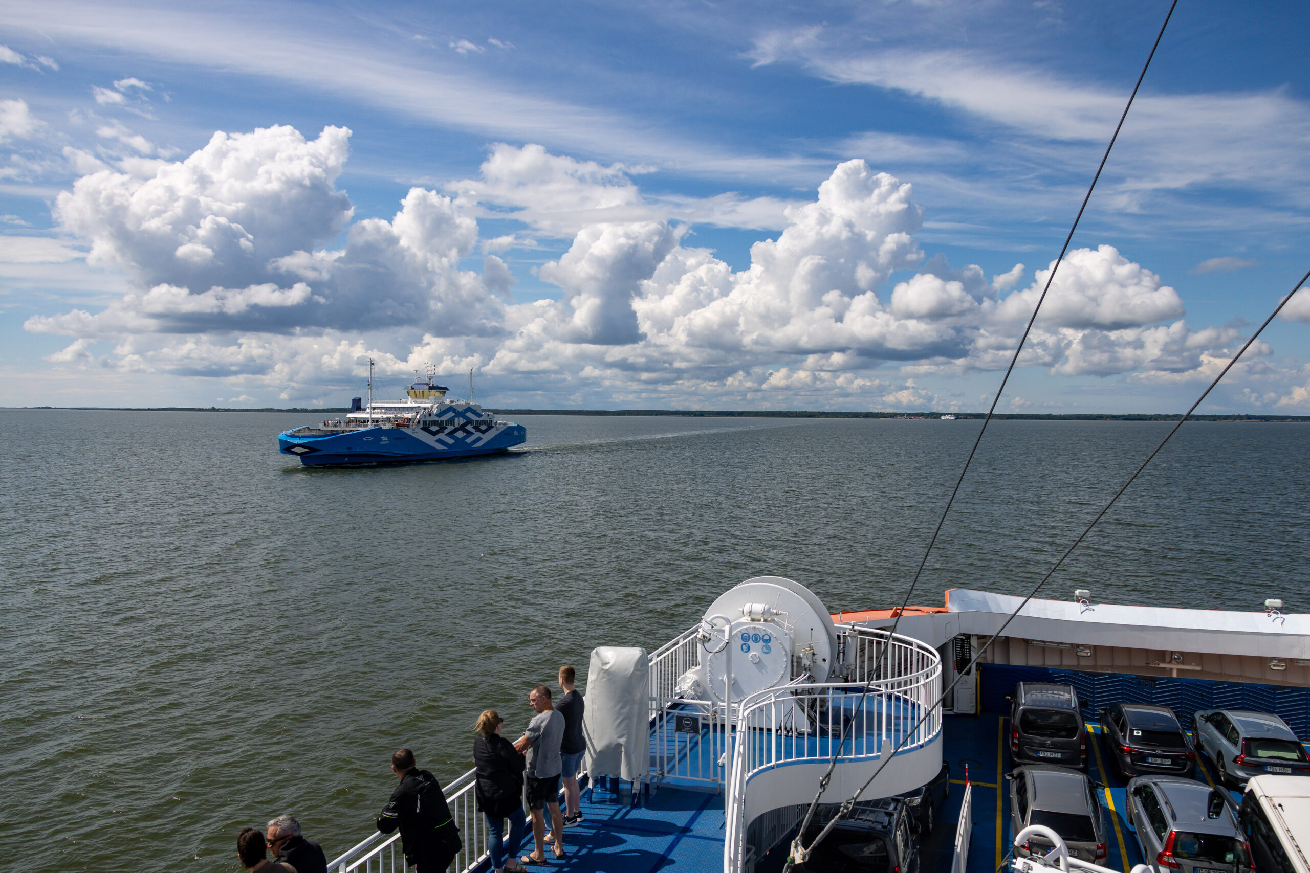 Wir verlassen das Festland bei Virtsu. Die Fähre legt ab, die Küste wird kleiner, das Wasser breiter. Die Überfahrt von Virtsu nach Kuivastu dauert rund dreißig Minuten und die Fähre legt etwa sieben Kilometer zurück. Kurz. Entspannt. Und irgendwie aufregend – weil man weiß, dass man gleich auf einer Insel steht.