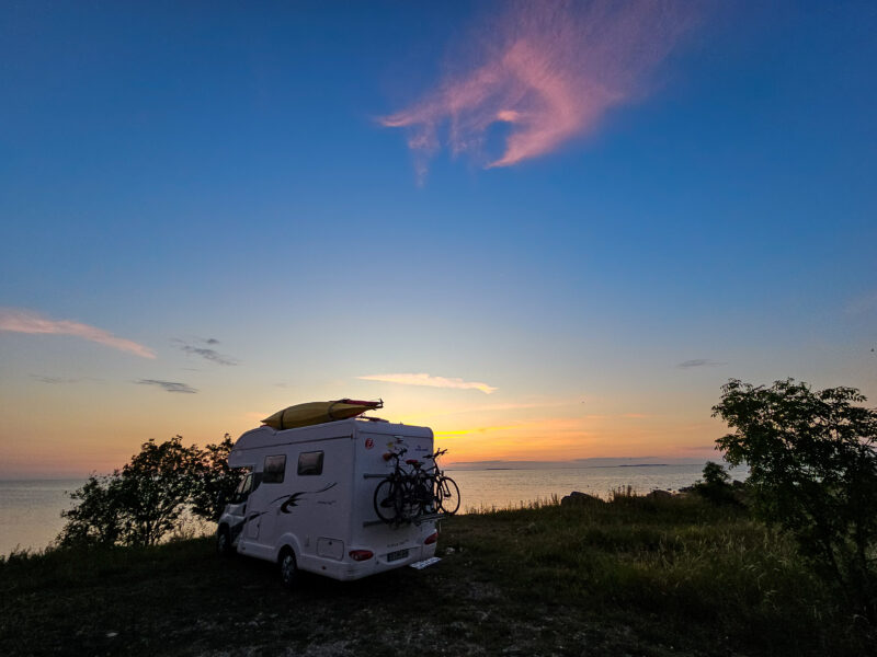 Im Wohnwagen seit 1968, später mit dem eigenen Zelt, im Auto durch Norwegen mit viel Regen, musste anschließend ein Kastenwagen her, der 1990 selbst ausgebaut wurde, mit den Kindern kam der Wohnwagen und als die fast aus dem Haus waren, 2012 die erste Weißware.