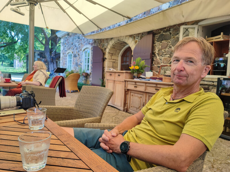 Für das Mittagessen biegen wir in die Auffahrt von Pädaste Manor ein. Das Herrenhaus liegt in einem alten Gutspark, von großen Bäumen umgeben, ruhig und großzügig. Wir entscheiden uns für den Garten – dort gibt es einen Mittagstisch, deutlich günstiger als das große Abendmenü, und genauso gut.