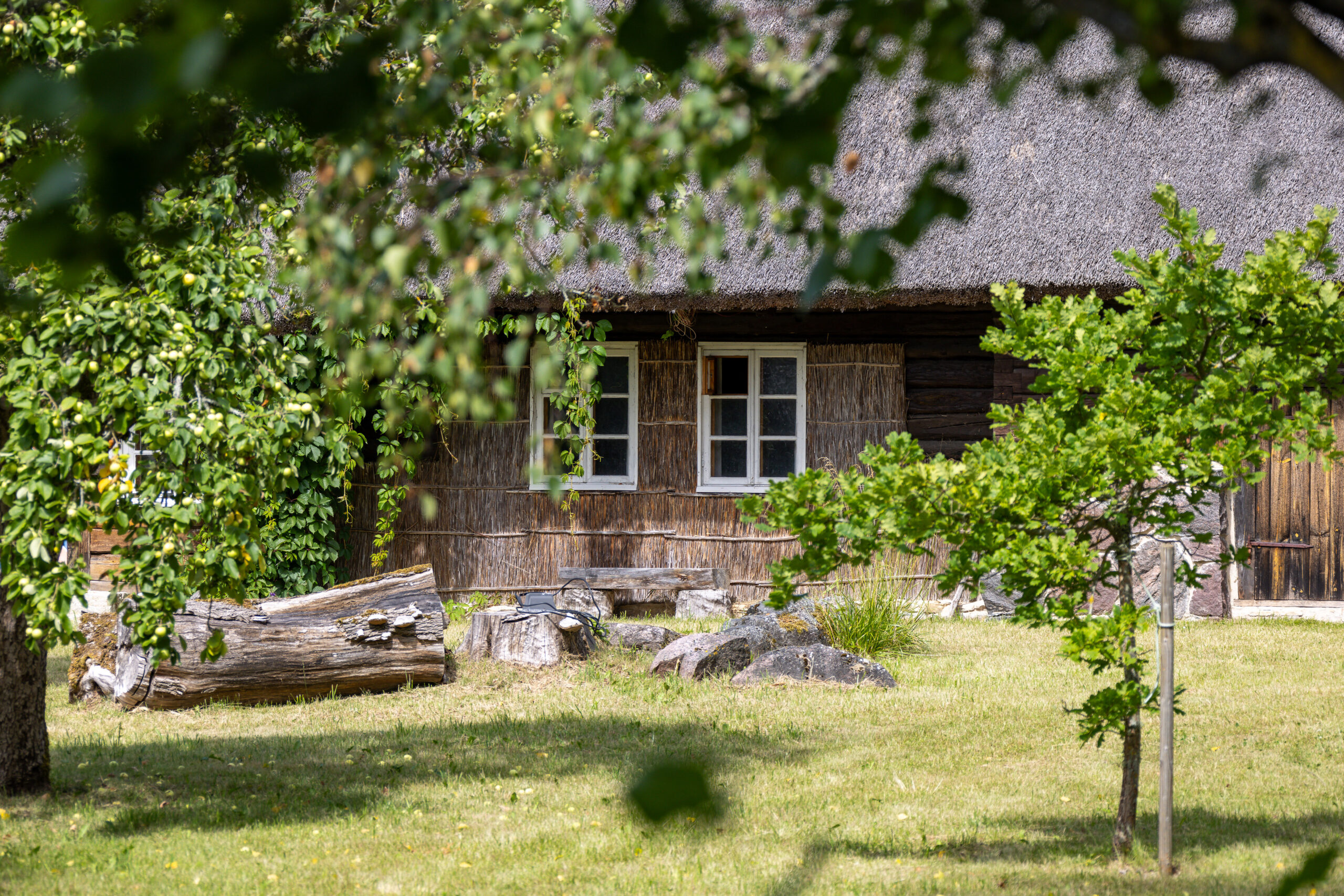 Wir lassen uns Zeit. Die Reetdachhäuser, die alten Gerätschaften, die Stille zwischen den Gehöften. Muhu hat etwas Unberührtes. Einen Geist des alten Estlands, der sich bewahrt hat, weil ihn die Touristenströme nie wirklich erreicht haben – weil alle durchgefahren sind.