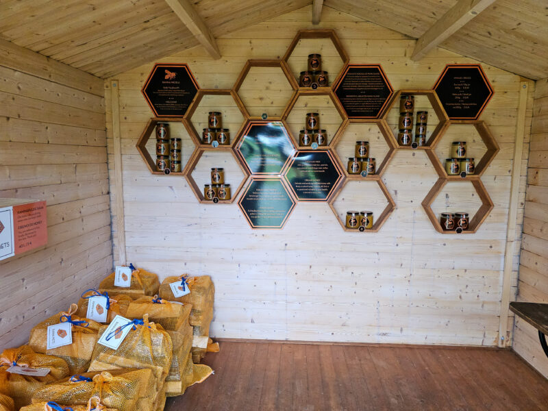 Wir finden den kleinen Laden der Imkerei Ranna Mesila Meemaja fast zufällig. Drinnen ein außergewöhnliches Regal in Wabenform: Honiggläser aus acht verschiedenen Standorten der Insel, jedes nummeriert, jeder Honig mit leicht anderem Geschmack, weil die Bienen an verschiedenen Stellen der Insel grasen. Der Imker erklärt das mit echter Freude. Er lebt hier. Das ist sein Zuhause.