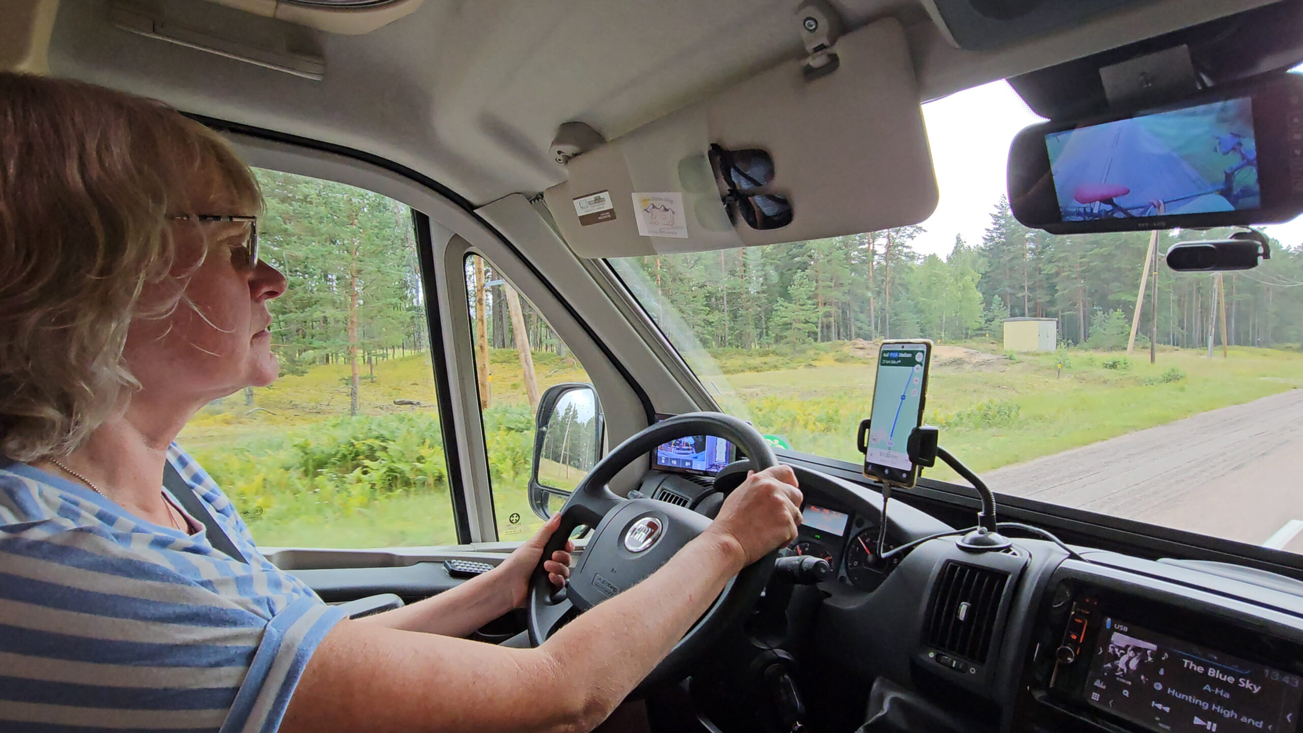 Kaum sitzt sie auf dem Fahrersitz, wird die Straße zur Schotterpiste. Kilometerlange Baustellen. Schotter, Matsch, Regen. Nadja sagt nichts. Sie fährt. Nach etlichen Kilometern sieht unser Wohnmobil aus wie ein Expeditionsfahrzeug. An einer Tankstelle versuche ich, den festgebackenen Sand abzubekommen. Ohne Erfolg.