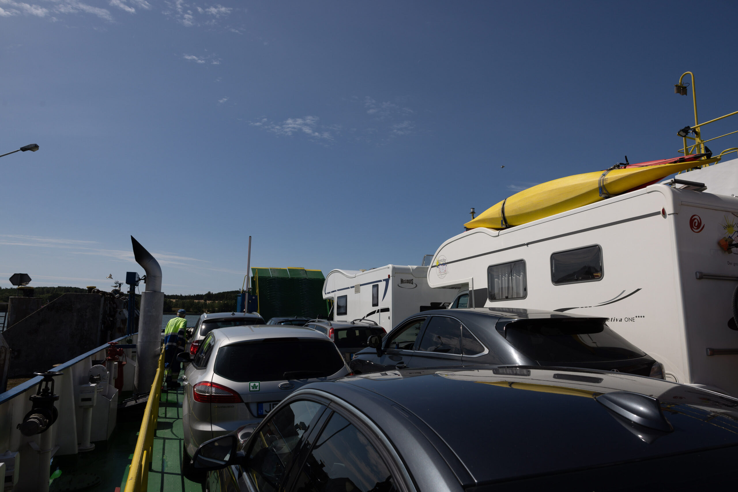 Die Kurische Nehrung ist nur per Fähre erreichbar. Die Autofähre legt vom neuen Fährterminal in Klaipėda (Nemuno g. 8, südlich der Innenstadt) ab und überquert das Memeltief in wenigen Minuten. Das Ticket gilt für Hin- und Rückfahrt und wird nur bei der Hinfahrt bezahlt – für ein Wohnmobil über 3,5 Tonnen rund 42 Euro (Stand 2023). An der Einfahrt zum Nationalpark wird eine einmalige Eintrittsgebühr fällig – unabhängig davon, wie viele Tage man bleibt. In der Hauptsaison beträgt sie für ein Wohnmobil rund 30 Euro. Die Nehrung ist über eine einzige Hauptstraße erschlossen, die von Klaipėda im Norden bis zur russischen Grenze im Süden führt.
