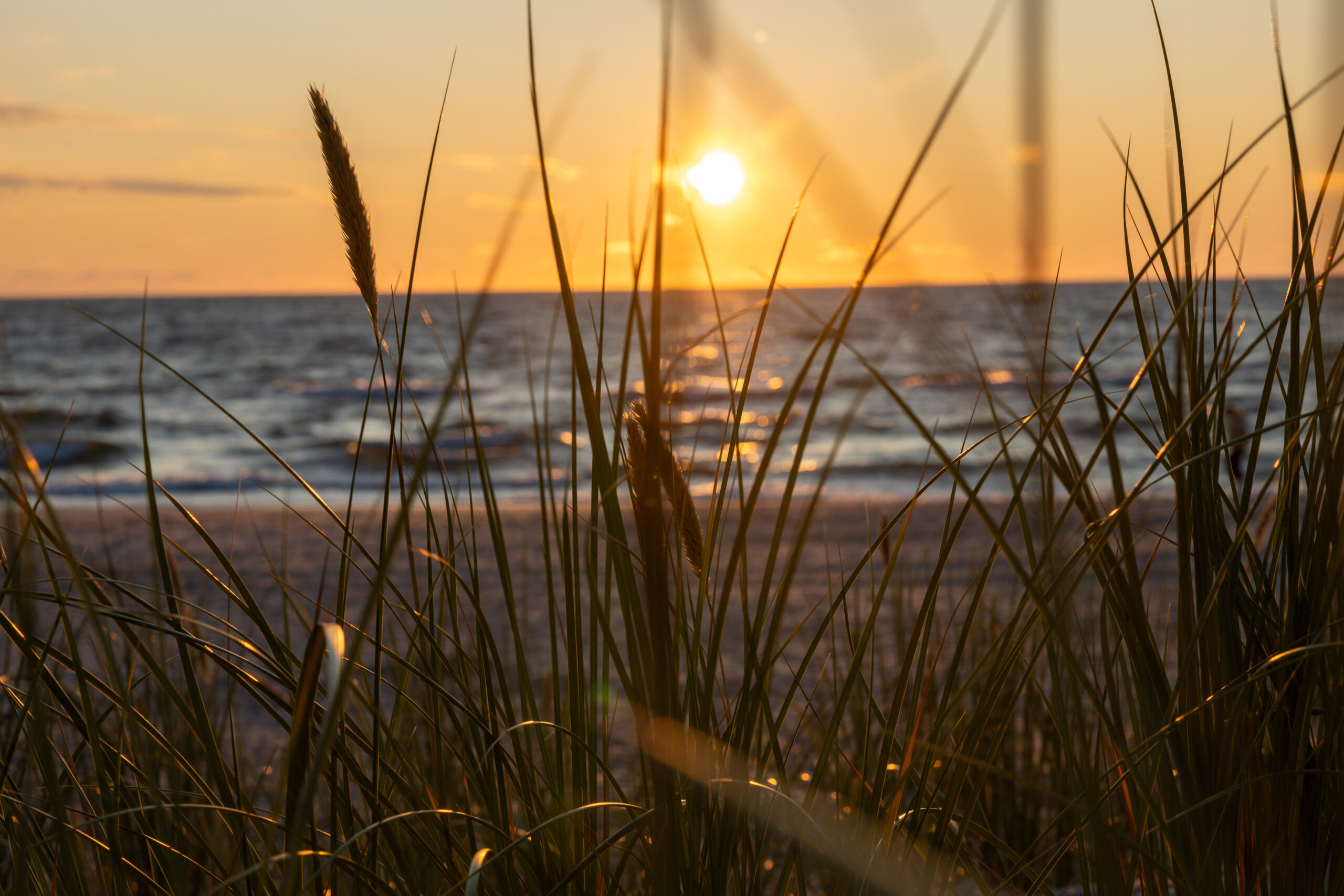 Keine fünf Minuten zu Fuß, und man steht in einer anderen Welt. Auf dem Dünenkamm stehen Skulpturen und Kunstwerke, die in den Sand gesetzt wurden: eine bronzene Figur, die sich gegen den Wind lehnt und in die Weite blickt, als könnte sie nicht fassen, was sie sieht. Dahinter: Sand, Horizont, das Haff auf der einen Seite, die Ostsee auf der anderen. Wir stehen dort jeden Abend.