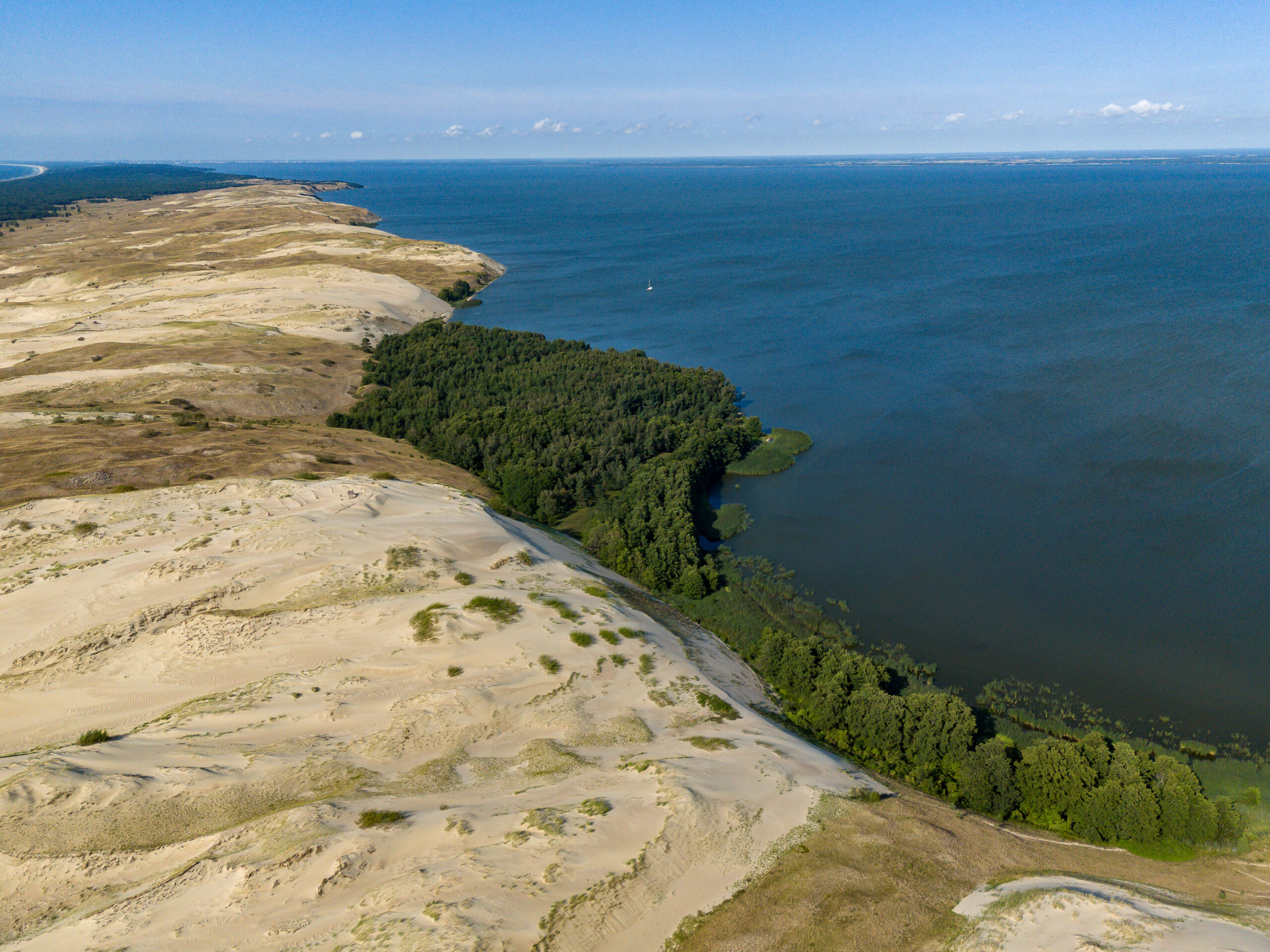 Die Toten Dünen liegen zwischen den Orten Pervalka und Juodkrantė und gelten als die längsten Wanderdünen Litauens. Vom 17. bis ins frühe 20. Jahrhundert wanderte der Sand so schnell, dass er vier Dörfer vollständig verschüttete – darunter Nagliai. Am höchsten Punkt der Düne befindet sich eine kleine Aussichtsplattform mit Blick auf Haff und Ostsee gleichzeitig. Das Gebiet ist ein streng geschütztes Naturreservat, der Besuch kostet Eintritt. Aktuelle Preise am Parkplatz oder unter nerija.lt.